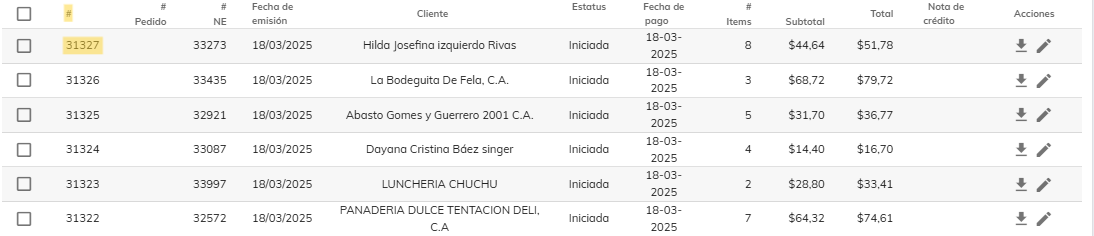 Descripción: Listado detallado de productos o servicios facturados, con sus respectivos precios y cantidades, basados en los pedidos o notas de entrega registrados.