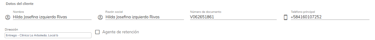 Descripción: Dirección fiscal del cliente, donde se enviará la factura. Debe coincidir con la dirección registrada ante el SENIAT.