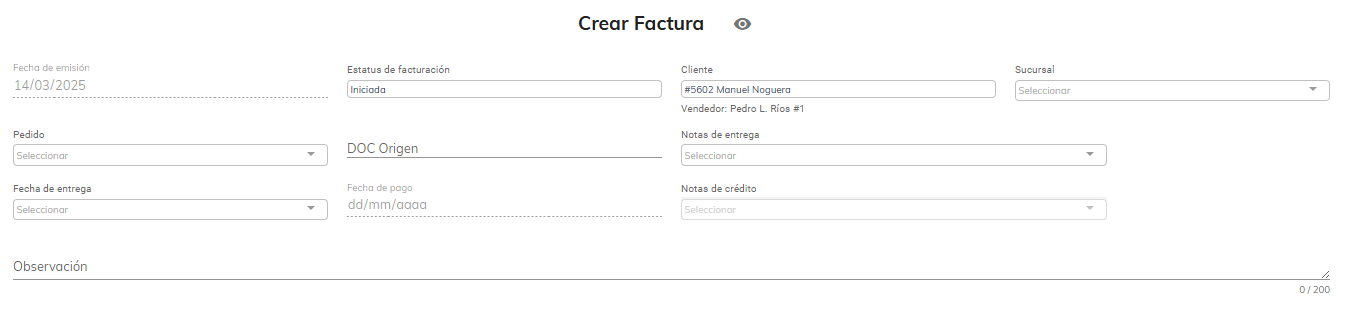 Descripción: Emisión de una factura asociada a un pedido o nota de entrega específica.