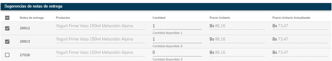 - Luego asigna las cantidades a facturar en las notas de entrega desde las mas antiguas a las mas recientes, de esta forma garantizar que sobre lo entregado no quede nada con fecha de emisión antigua sin ser facturado.