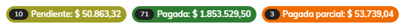 • Estatus de cobro: Pendiente, Pagada o Pagada Parcialmente.