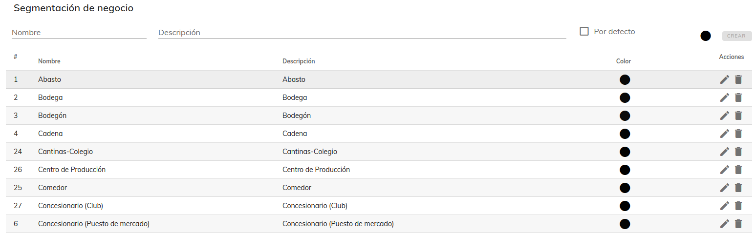 Para crear o editar una nueva Segmentación se ingresa el Nombre, una breve Descripción y se hace clic en el botón "Crear" o "Guardar".