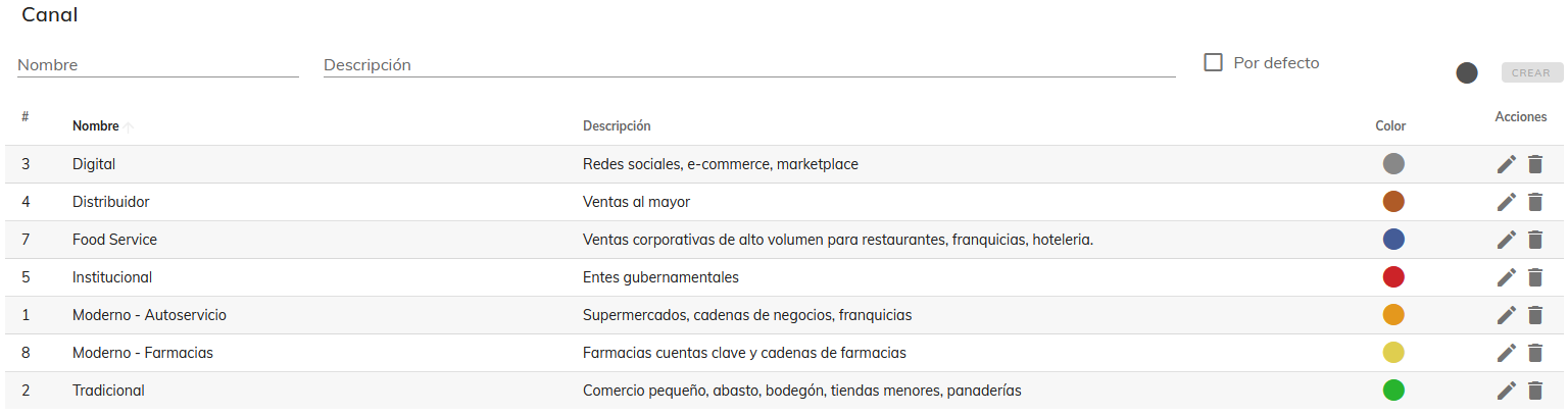 En esta sección se crean y guardan los Canales de Comercialización que corresponden a cada prospecto/cliente.