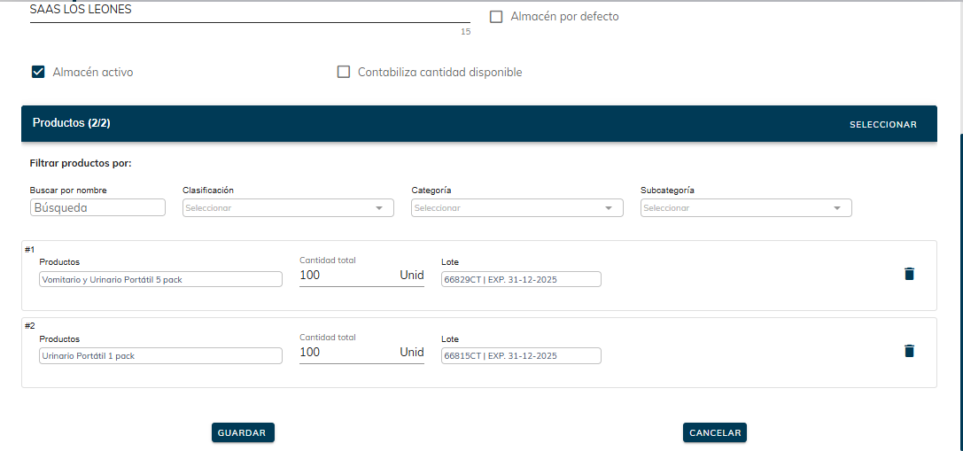 Recuerda debes hacer click en el botón Guardar para actualizar todos los cambios y productos ingresados al nuevo Almacén A Consignación